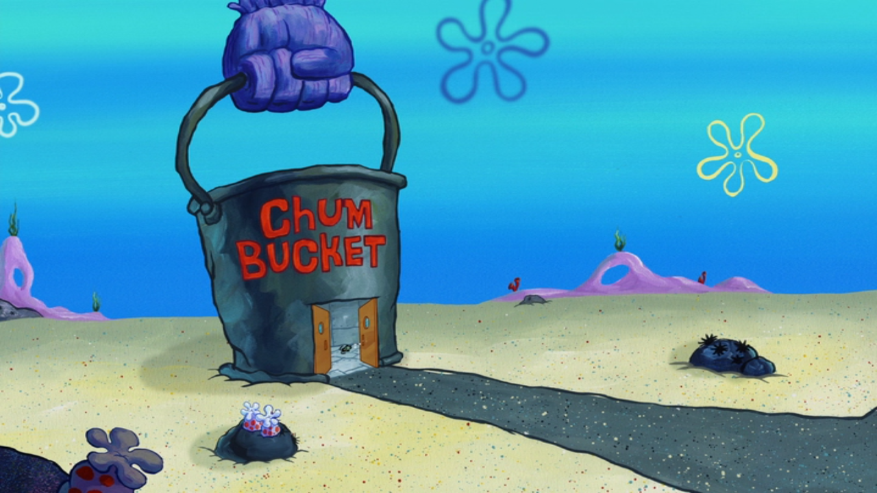 The chum bucket, the fictional restaurant run by plankton and karen in spongebob squarepants.